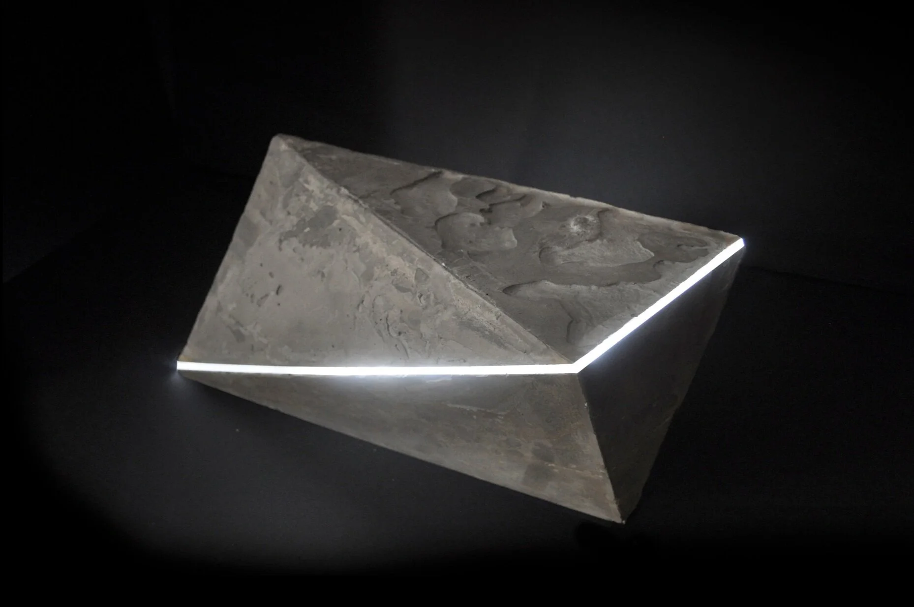 I made this lamp over three weeks in an industrial design course at Stanford in 2013. I wanted to surprise and invite touch with my design, so I chose concrete and used less than enough to fill the mold to create a liquid-looking top surface.