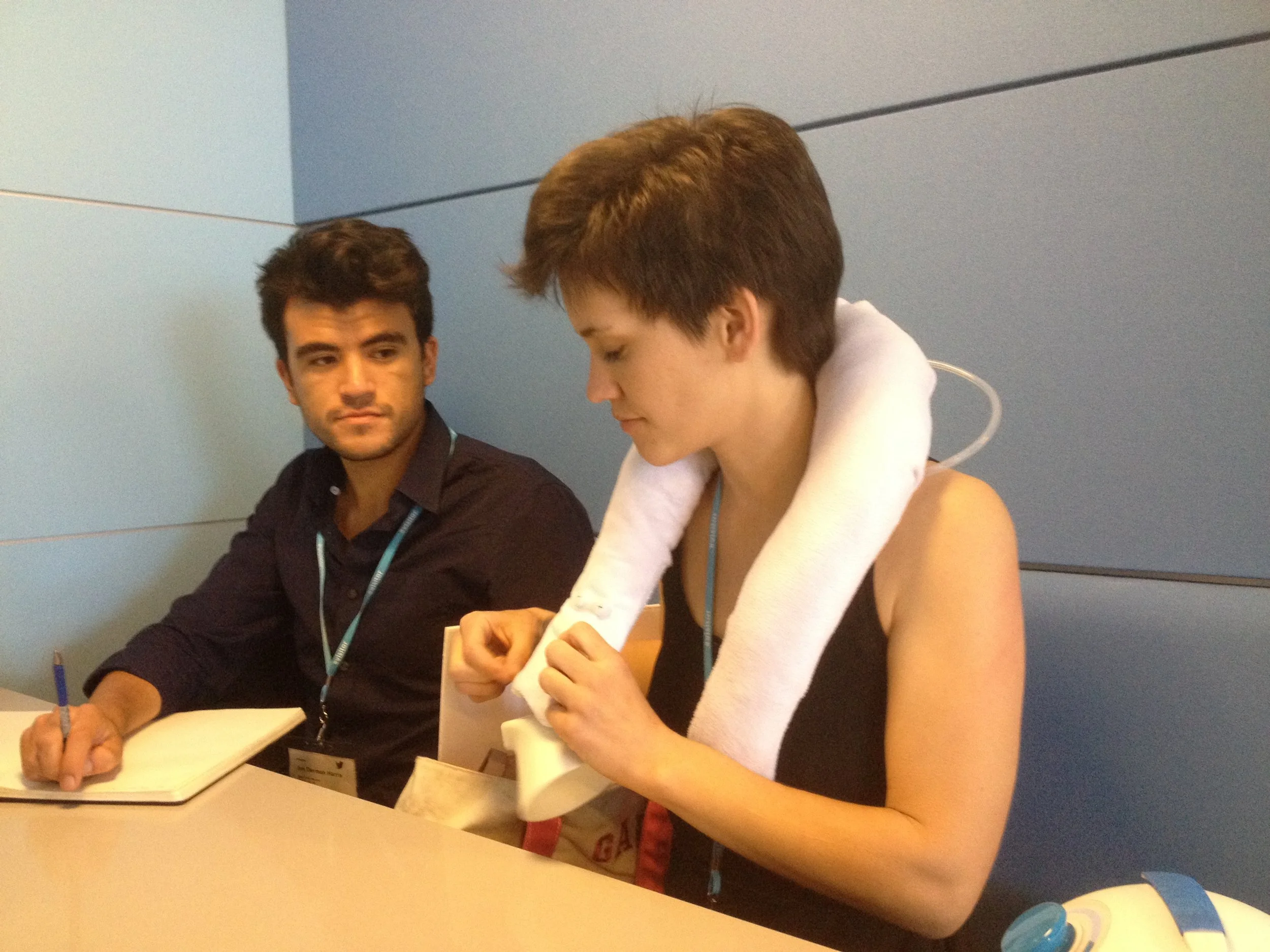 7. After 30 minutes, she takes off the XX and re-buttons her shirt.